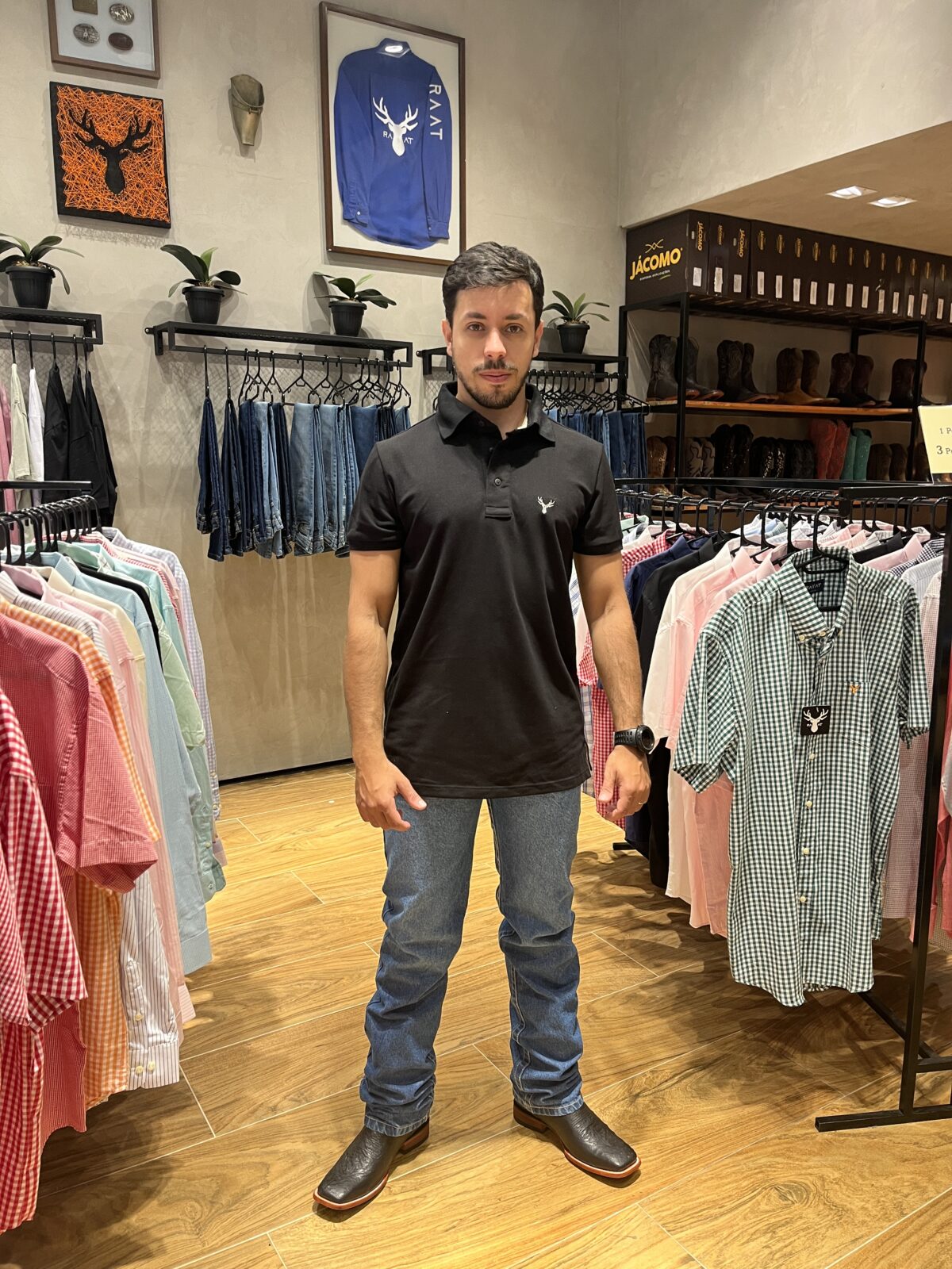 A simplicidade elegante desta camisa polo preta RAAT é uma de suas maiores virtudes. Livre de adornos extravagantes, torna-se uma tela em branco para expressar a individualidade. Pode ser combinada com jeans para um visual casual ou integrada a um look mais sofisticado com calças sociais, oferecendo uma versatilidade que se estende a diversos momentos do dia.